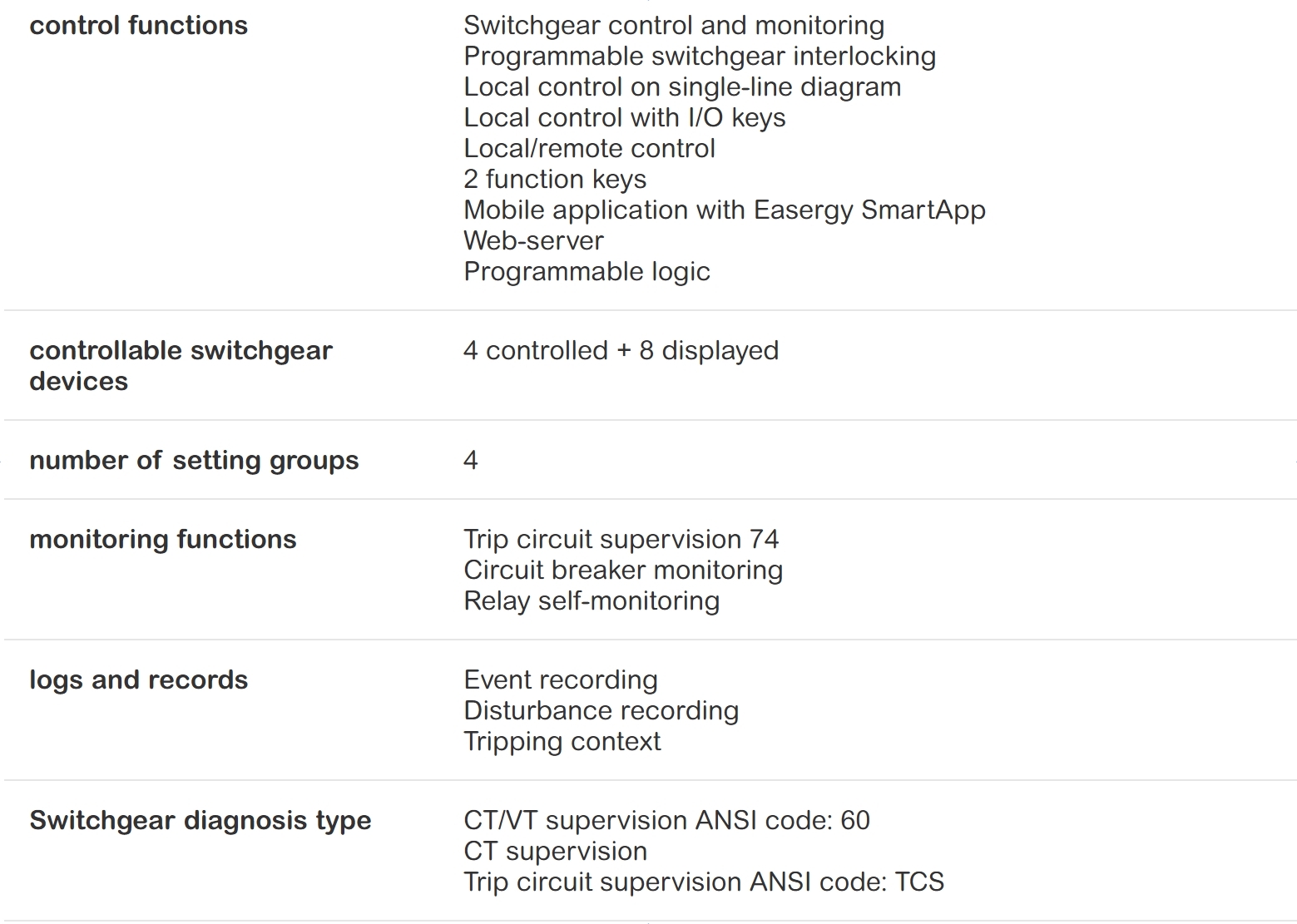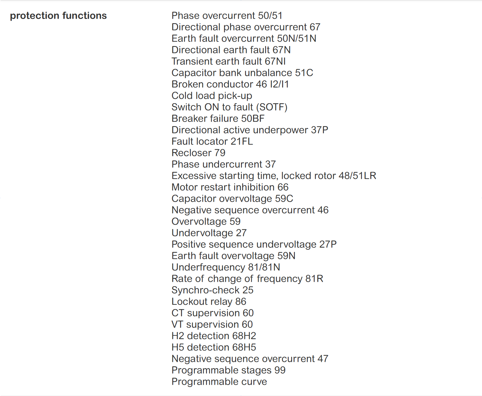 Perfectly suited for buildings and industry, utilities, and large industrial processes. The relay include protection for overcurrent, overload, broken conductor, earth-fault and breaker failure as per ANSI. It also feature an automatic recloser, a switch ON to fault, inrush protection and lockout among others. Simple, reliable, safe and easy-to-use, thanks to the User Interface display. The protection relay can to be supplied by a 48 VAC/VDC to 230 VAC/VDC network. It include 16 digital inputs, 2 RJ45 communication port and 1 USB on front of the device. Mechanical dimensions are 169.5 mm in height, 170 mm in width and 205 mm in depth. The relays are certified with EN 60255-26 for electromagnetic compatiblity.