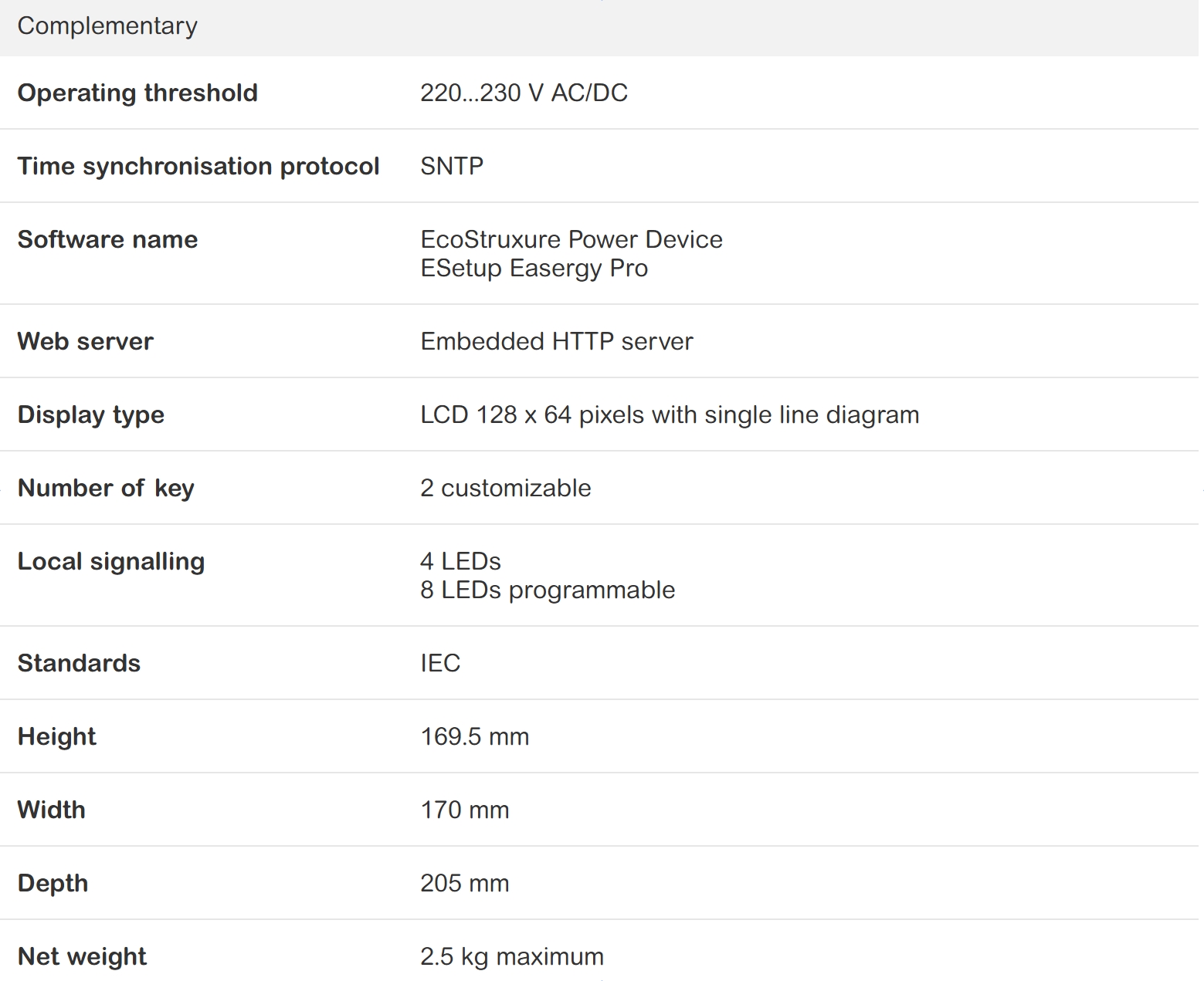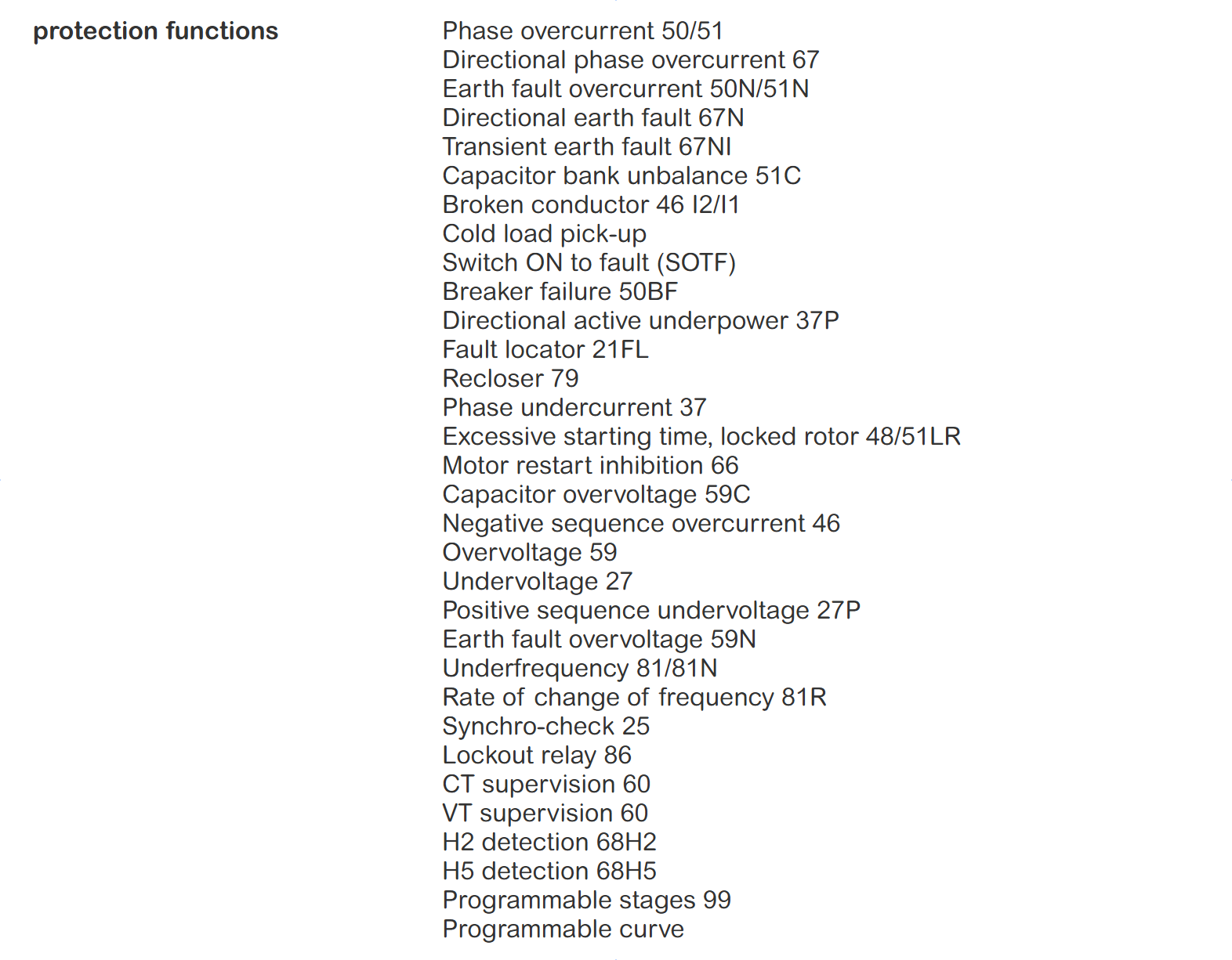 Perfectly suited for buildings and industry, utilities, and large industrial processes. The relay include protection for overcurrent, overload, broken conductor, earth-fault and breaker failure as per ANSI. It also feature an automatic recloser, a switch ON to fault, inrush protection and lockout among others. Simple, reliable, safe and easy-to-use, thanks to the User Interface display. The protection relay can to be supplied by 24 VDC to 48 VDC network. It include 16 digital inputs, 1 RS485 communication port and 1 USB on front of the device. Mechanical dimensions are 169.5 mm in height, 170 mm in width and 205 mm in depth. The relays are certified with EN 60255-26 for electromagnetic compatiblity.