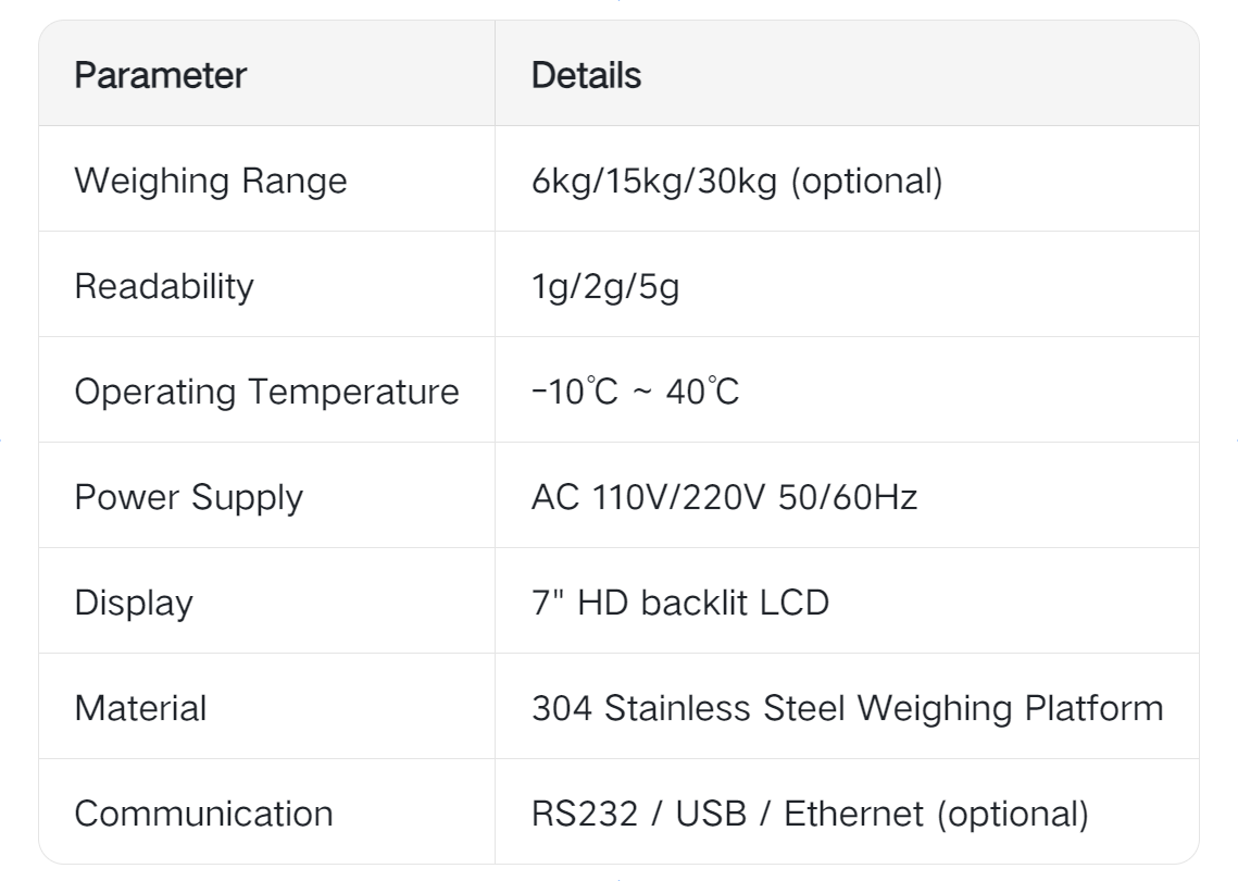 Our automatic supermarket weight scale is designed to deliver fast, accurate weighing for modern retail environments. Engineered for both cashier-assisted checkout and self-service applications, this digital scale integrates seamlessly with POS systems to streamline operations, reduce wait times, and improve customer experience. Suitable for all retail scenarios from fresh produce sections to bulk food aisles, it combines high precision with durable construction to meet the demands of daily commercial use.