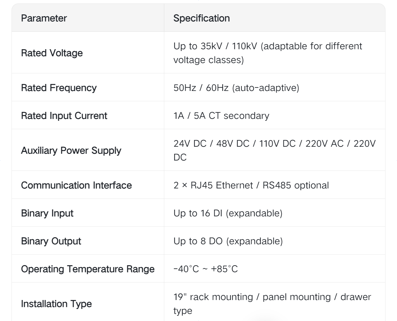 🔹 Grid Substations: 10kV ~ 110kV busbar protection for transmission and distribution substations