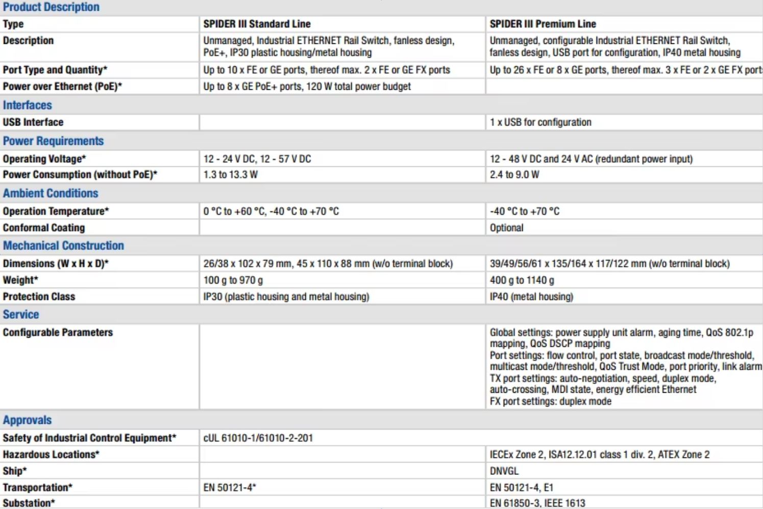 Select a Standard or Premium Line unmanaged switch to meet your needs Reliably transmit large amounts of data across any distance with the SPIDER III family of industrial Ethernet switches. These unmanaged