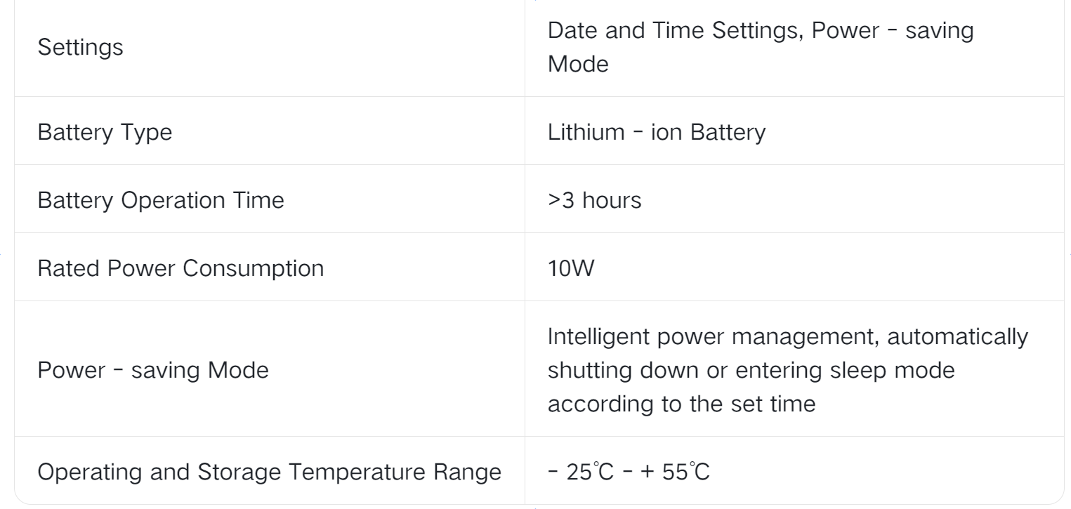 Convenient Operation: Ergonomic design, simple button operation; has functions such as date and time setting and power - saving mode; powered by a lithium - ion battery, with a battery operation time of more than 3 hours, and supports intelligent power management, which can automatically shut down or enter sleep mode according to the set time.