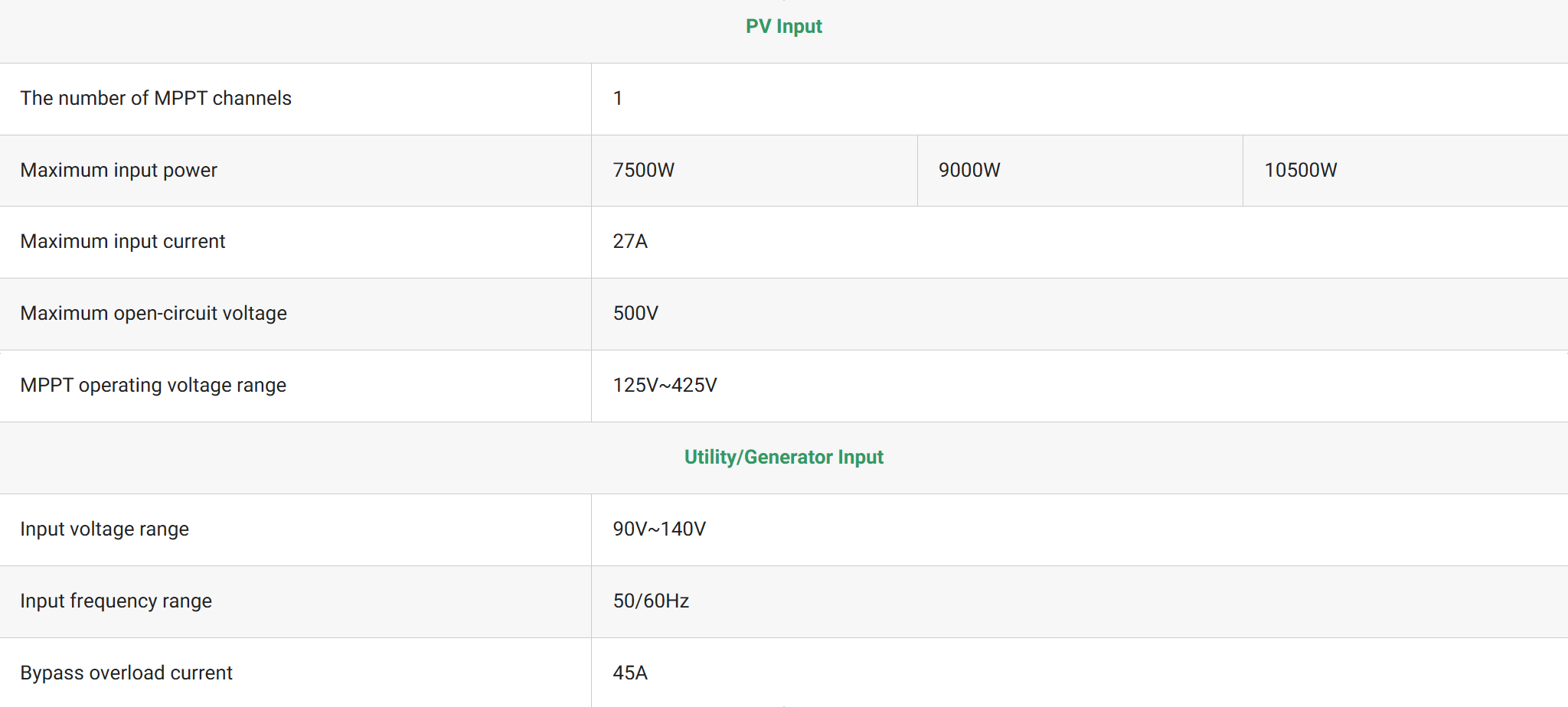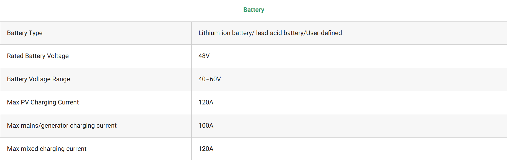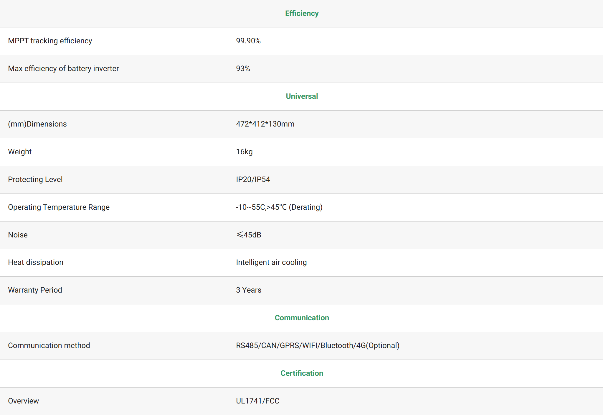• Supports up to 6 units in parallel, off-grid operation,and multiple batteries in parallel
